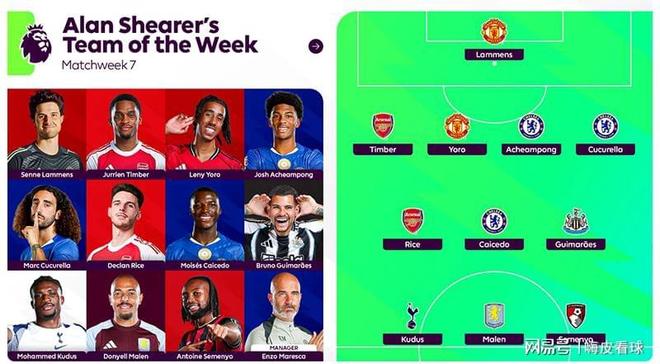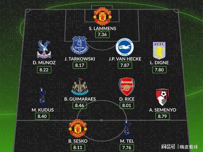 著名数据统计网站WhoScored根据上轮的球员评分,罗列了每个位置的最高分球员。力助曼联获得新赛季首场零封的拉门斯,以及连续两场比赛都有进球谢什科,成为门将和前锋的入围球员,跟热刺一样,都有两名球员入选。谢什科和特尔,能够力压进球停不了的哈兰德,都是不容易的。