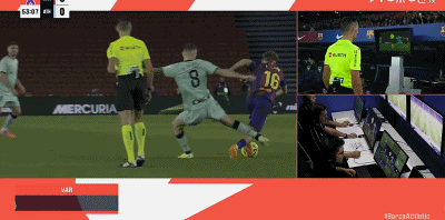 第53分钟,桑切特凶狠踢倒费尔明,裁判经VAR确认将黄牌改为红牌